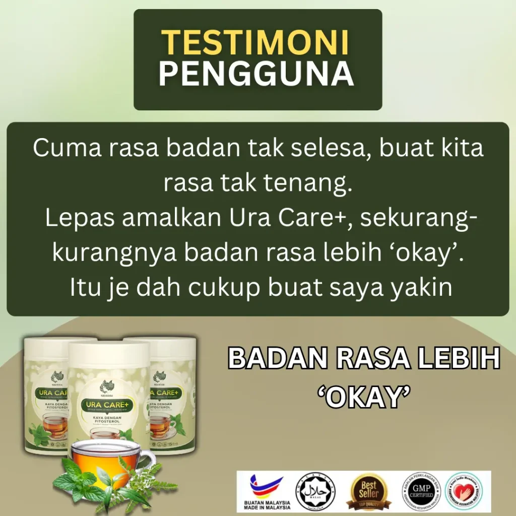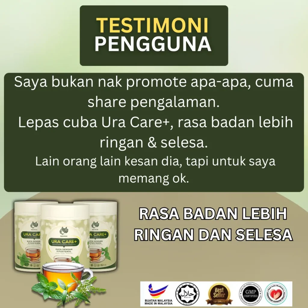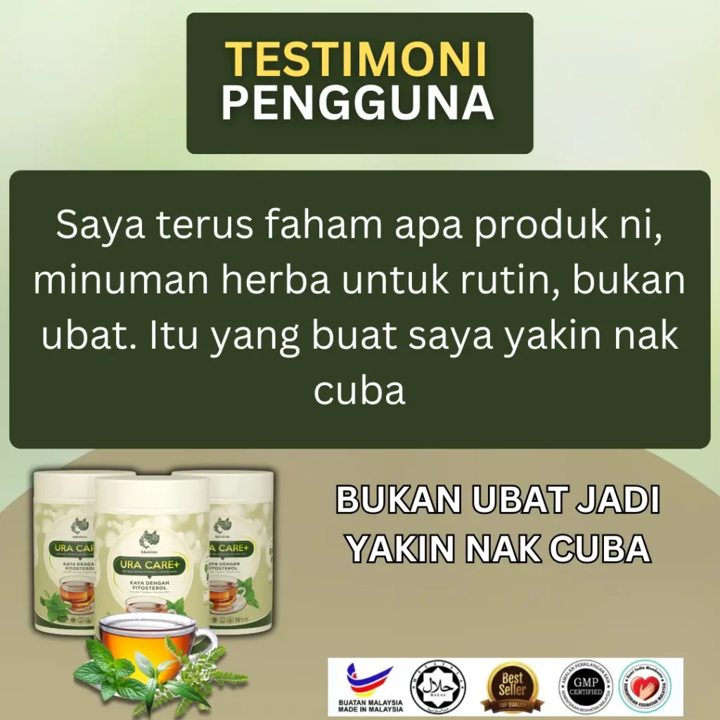 Ura Care+ ialah teh herba semula jadi, bukan ubat atau suplemen kimia.