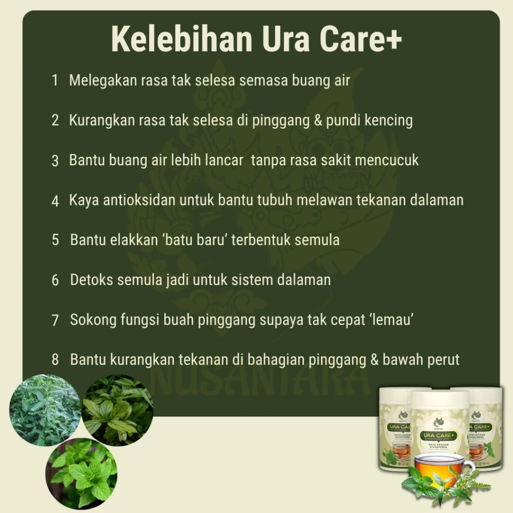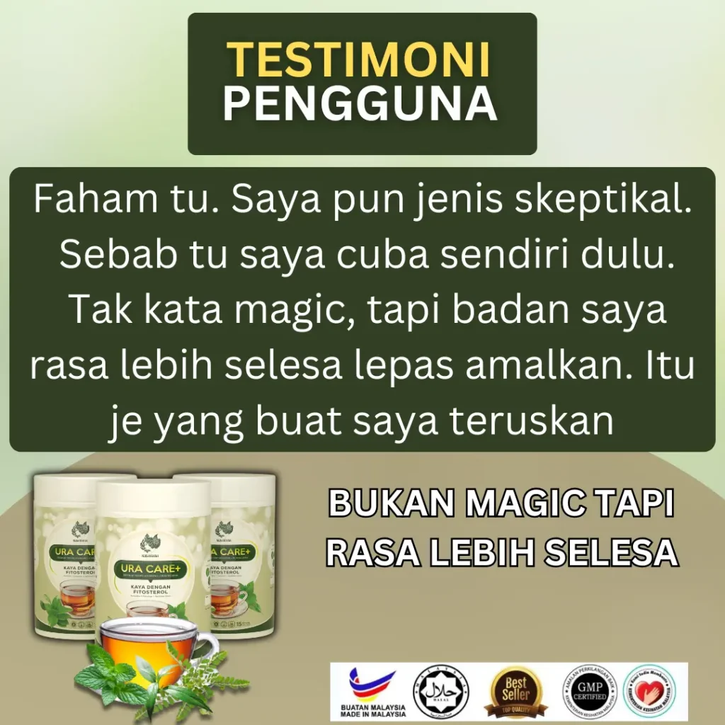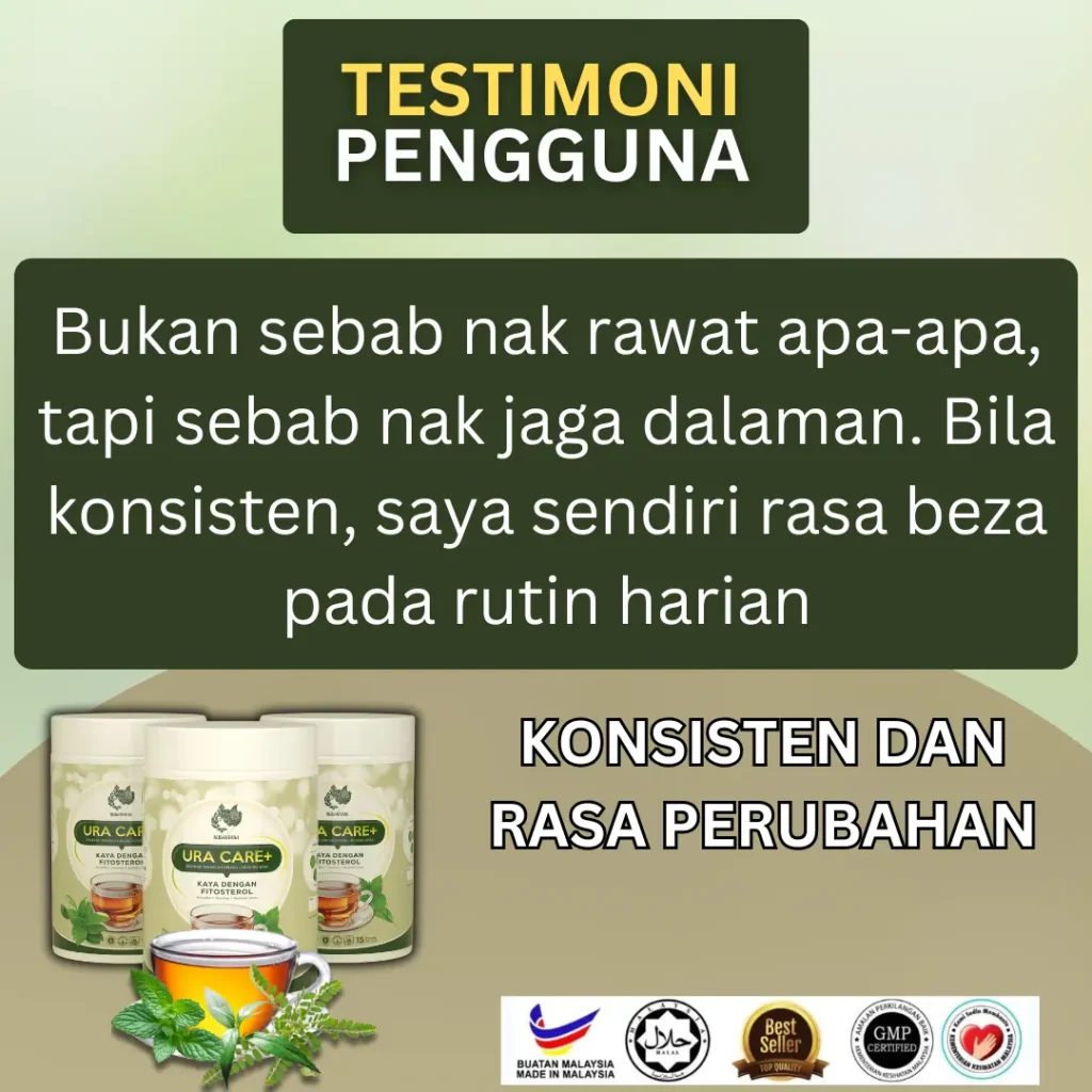 Ura Care+ ialah teh herba semula jadi, bukan ubat atau suplemen kimia.
