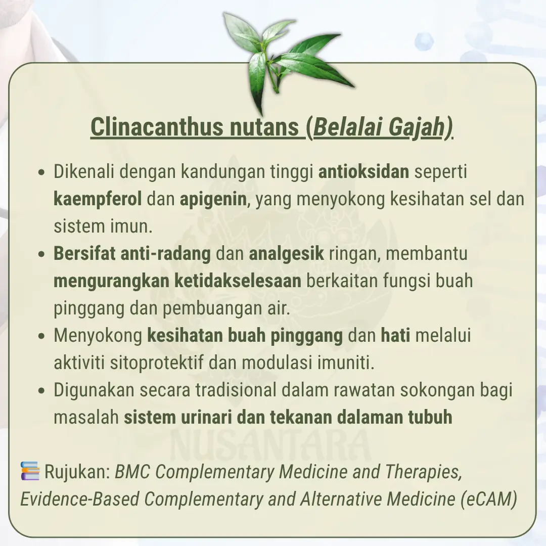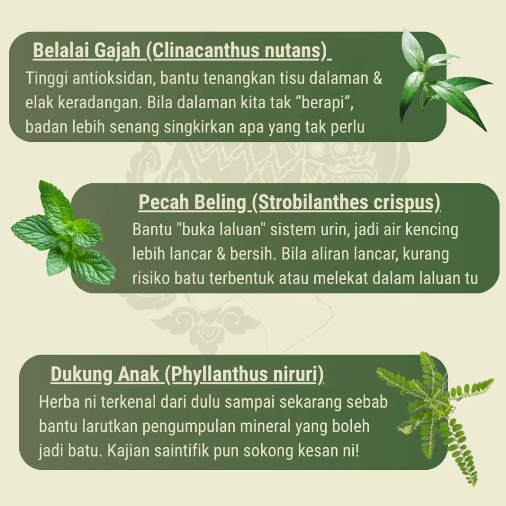 Setiap herba dipilih berdasarkan penggunaan tradisional, pengalaman turun-temurun, kesesuaian untuk diamalkan secara konsisten. Maklumat umum & rujukan bahan disediakan untuk bacaan ini bukan nasihat perubatan